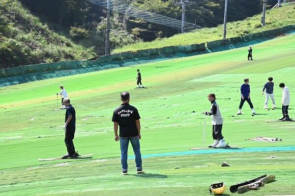 2日目は、草スキーを体験しました。未経験者が多く苦戦していましたが、次第に上達し、大いに楽しみました。その後、篠栗町にある南蔵院に移動し、柵越しから涅槃像を見ました。学生たちはその姿に大変感激しました。