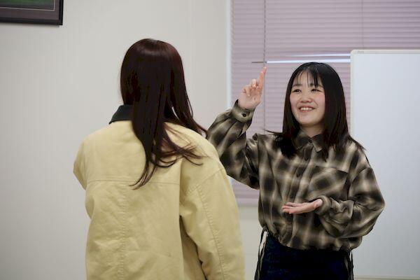 きっかけは“推し”だった。手話サークル「hanate」の副代表・小宮さくらさん(人文学部文化学科3年次生)は、「好きなアイドルが手話を使うのを見て、興味が一気に高まりました」と話す。