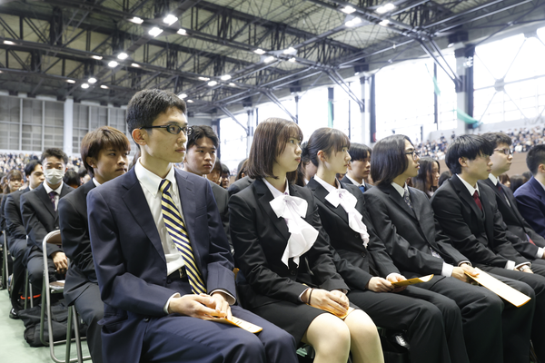 永田潔文学長は、「人生は悩みや苦しみの連続です。しかし、夢を持つことで苦しみを乗り越え前向きに進む力が湧いてきます。自分がどう幸せでありたいか。それを考えてみてください。夢を持てば、可能性や視野は自然と広がっていくものです。多種多様な人と交流する機会が多ければ多い程、視野を広げられ、追うべき夢やそのきっかけを見つけられる可能性が高まります。思うままに、夢を可能性をふくらませ、大胆に」と新入生にエールを贈りました。