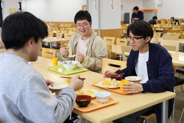 新しい学食で食事を楽しむ学生