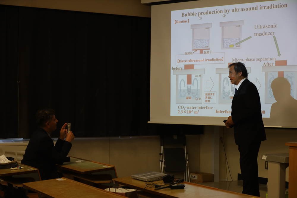 同日、研究交流セミナーも開催しました。本セミナーでは、米国のシアトル大学土木・環境工学部、環境正義持続可能性センター長のフィリップ・トンプソン教授(オンライン参加)とパリーク教授、工学部化学システム工学科の三島健司教授に研究内容を講演いただきました。