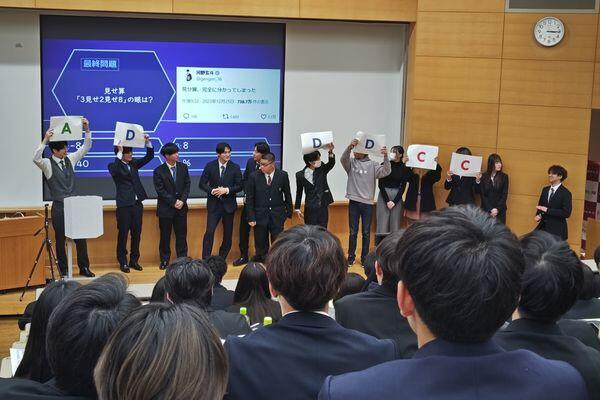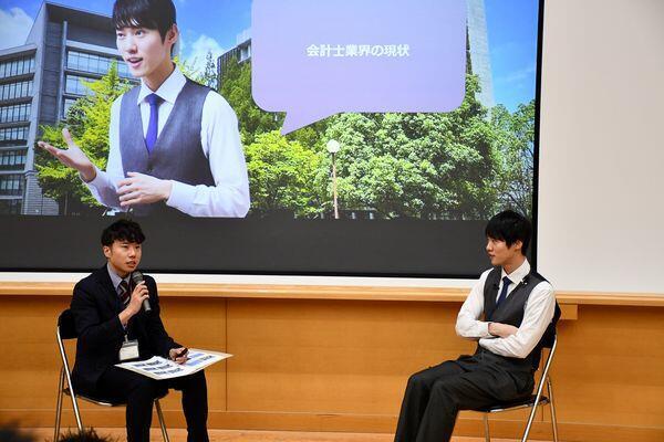 本学学生のほか、公認会計士を目指す中高生を含む約400人の参加者から、「自分の10年後を見据えたときに意識することは何か」「うまくいかなくて辛いときはどう乗り切るのか」などの質問がありました。講演会後には、商学部の滝沢凜助教とのトークセッションや参加者とクイズ対決なども行われました。