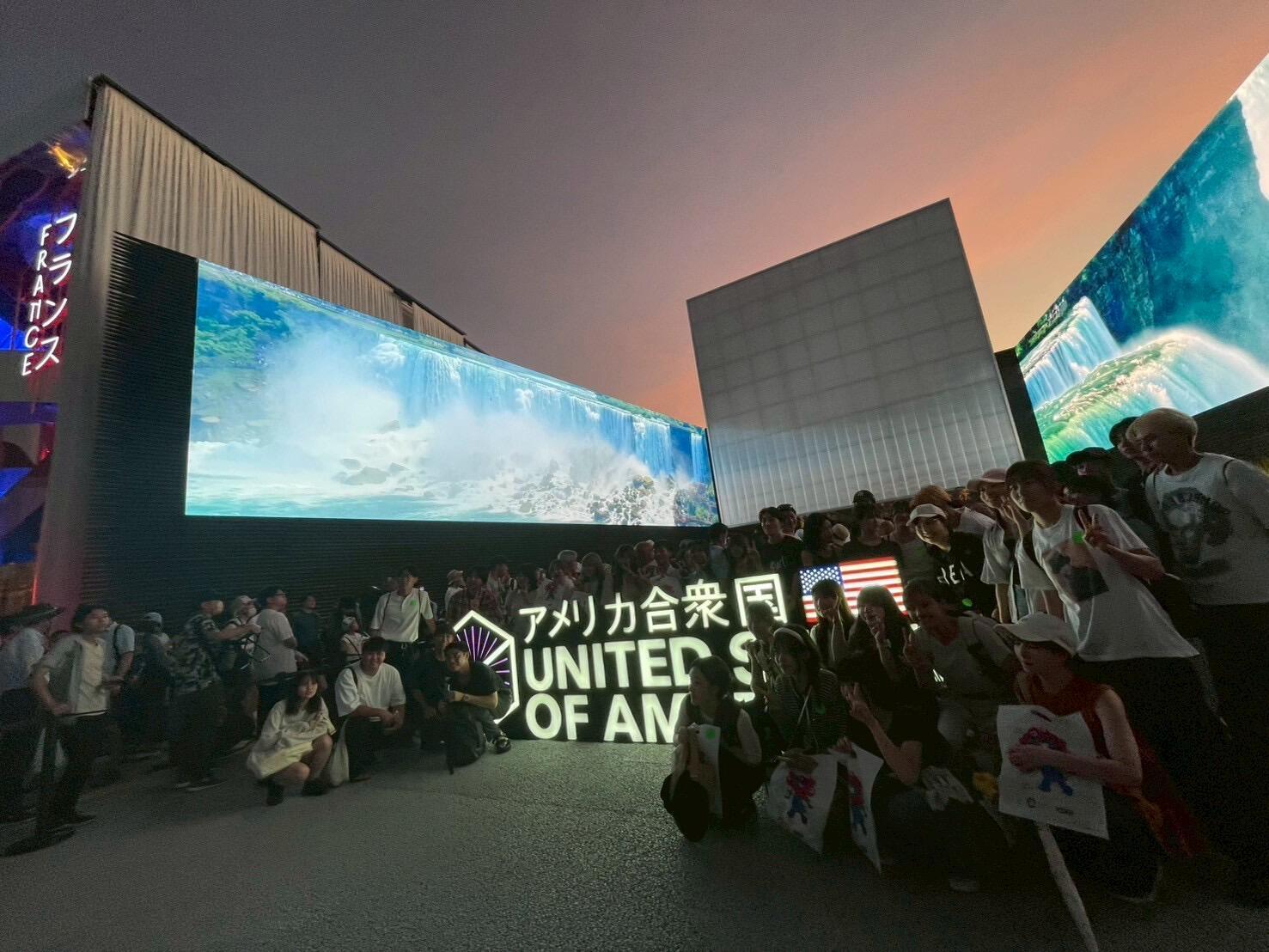 初日は、KDDIの協力による「未来の都市」パビリオンを見学しました。先端テクノロジーと持続可能な都市づくりを融合させた展示に触れ、運営スタッフから背景や思いを聞くことで、未来都市の可能性を考えるきっかけとなりました。その後、海外パビリオンを巡り、国際的な視点を取り入れながら議論を深めました。