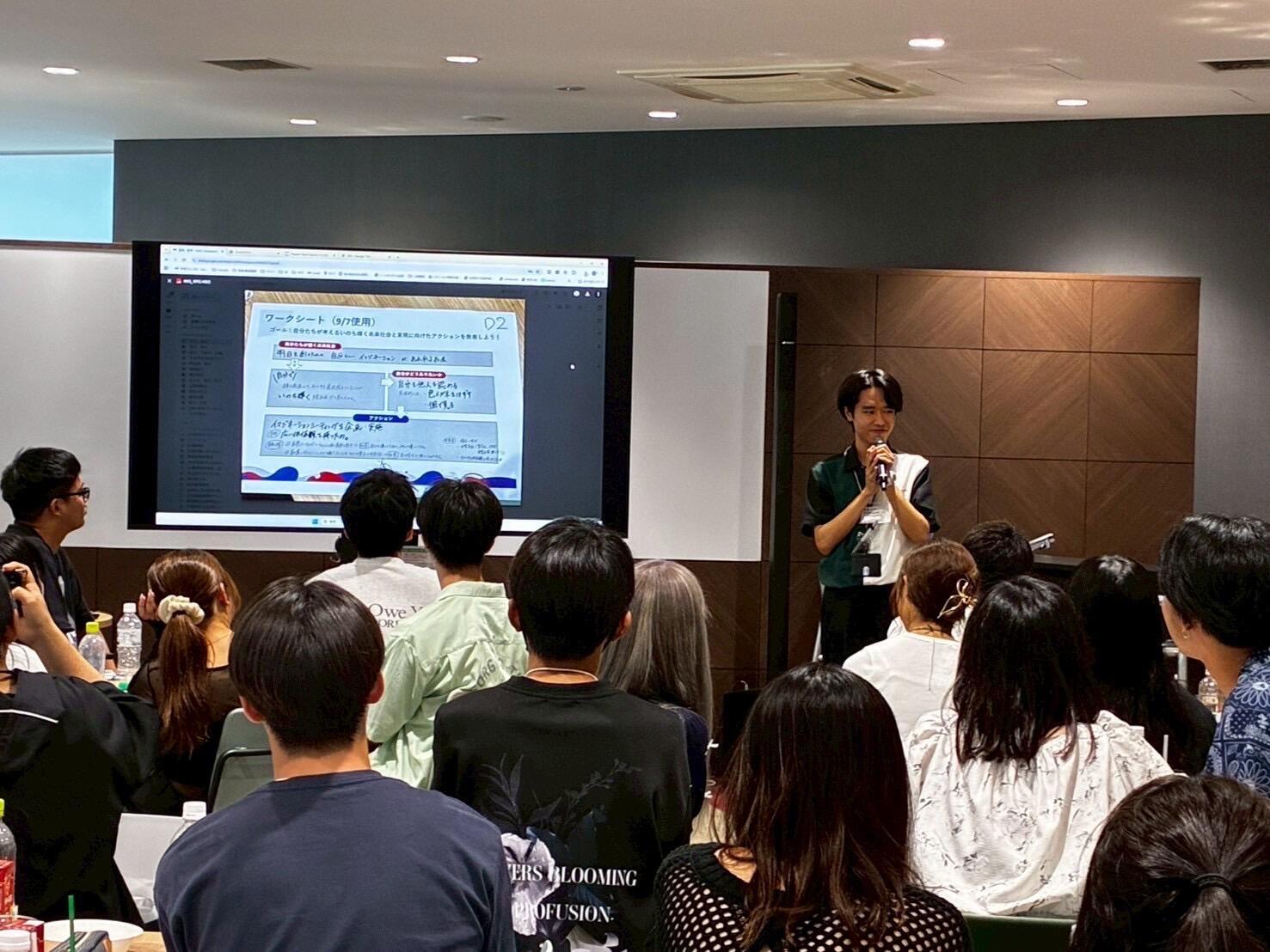 2日目は、キリンビバレッジ(株)によるワークショップで交流を深め、(株)日本旅行によるプログラムでは、万博のテーマ「いのち輝く未来社会のデザイン」とSDGsを結び付けたディスカッションを実施しました。学生たちは、未来社会のあり方を多角的に考え、発表を通じて課題解決に向けた視点を広げました。