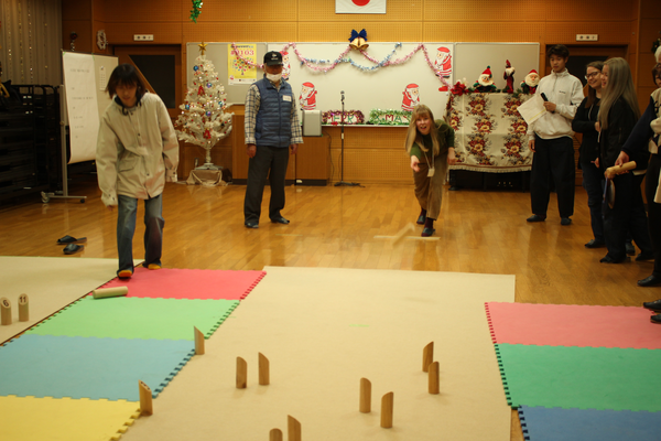 実行委員である国際交流会館居住学生2人が中心となり企画し、「日本の遊び・外国の遊びを通して交流を深める」というテーマのもと、けん玉・お手玉・かるた等の「昔遊び」やフィンランド発祥の「モルック」で交流しました。