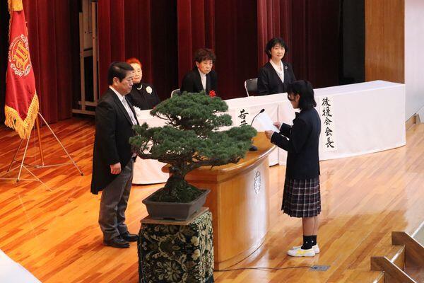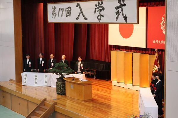 また、貫正義学校法人福岡大学理事長から「変化の激しい時代だからこそ、自らの未来を主体的に切り拓く力を、この学び舎でしっかりと培ってください」と挨拶があり、永田潔文学長からは「若葉高校と福岡大学の高大一貫教育において大切にしているのは、自分の目で社会を見つめ、考え、解決の糸口を模索することです。本校の恵まれた環境でその基礎となる学力をしっかりと養い、着実なステップを積み重ね、本当の意味での『知恵のある人』として成長されることを心から願っています」と祝辞がありました。