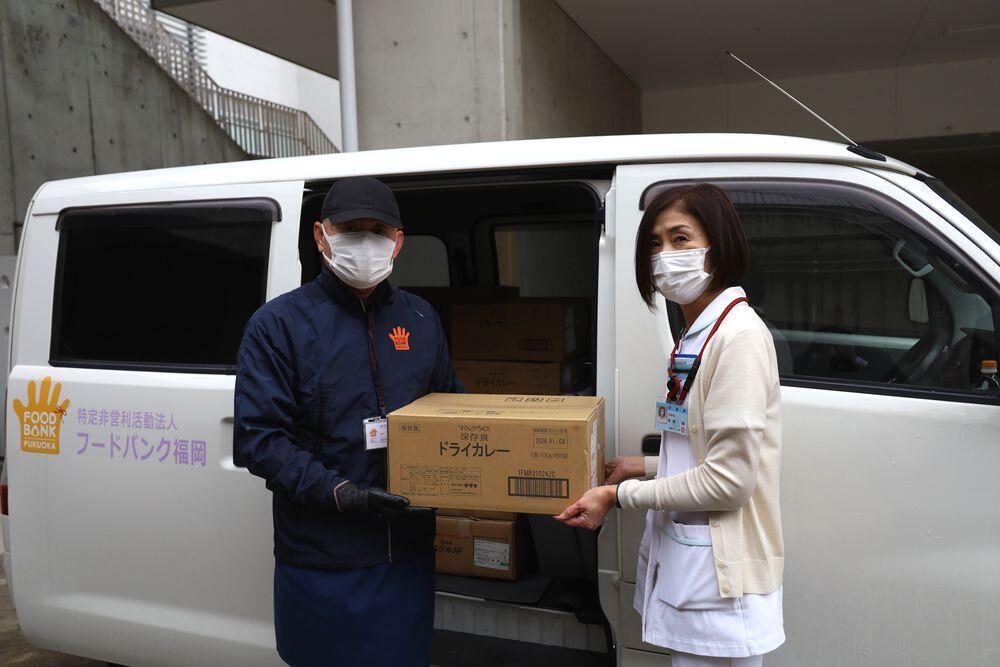 1月24日(火)、福岡大学病院に備蓄する食料品をフードバンク福岡へ提供しました。この取り組みは一昨年から続いており、今回で3度目となります。