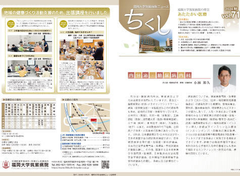 福岡大学筑紫病院では、各科の特徴やスタッフ紹介などを掲載している筑紫病院ニュース『ちくし』を年4回発行しています。