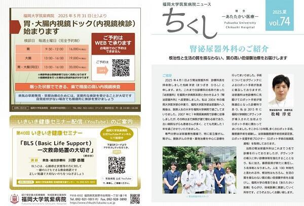 福岡大学筑紫病院では、各科の特徴やスタッフ紹介などを掲載している筑紫病院ニュース『ちくし』を年4回発行しています。