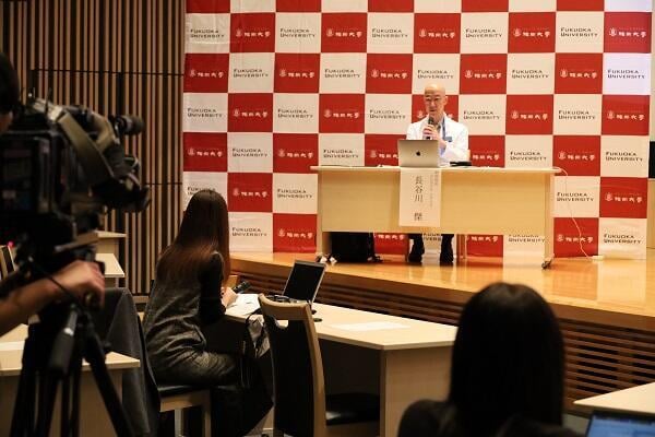 記者から質問を受ける長谷川教授