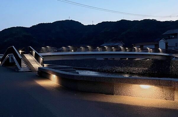 「津久見川プロジェクト」は柴田久教授を中心に、景観まちづくり研究室が携わってきたプロジェクトで、2017年の台風で氾濫し浸水被害に見舞われた地域を被災前よりも豊かな河川空間の創出を目指した復興事業です。本事業では、大分県と津久見市と福岡大学が連携して取り組み、「治水機能の向上と石積み護岸」「照明付き特殊堤の新設」「洗練された二橋の架替」等を実現し、高次の防災改修と豊かな河川空間を創出しました。