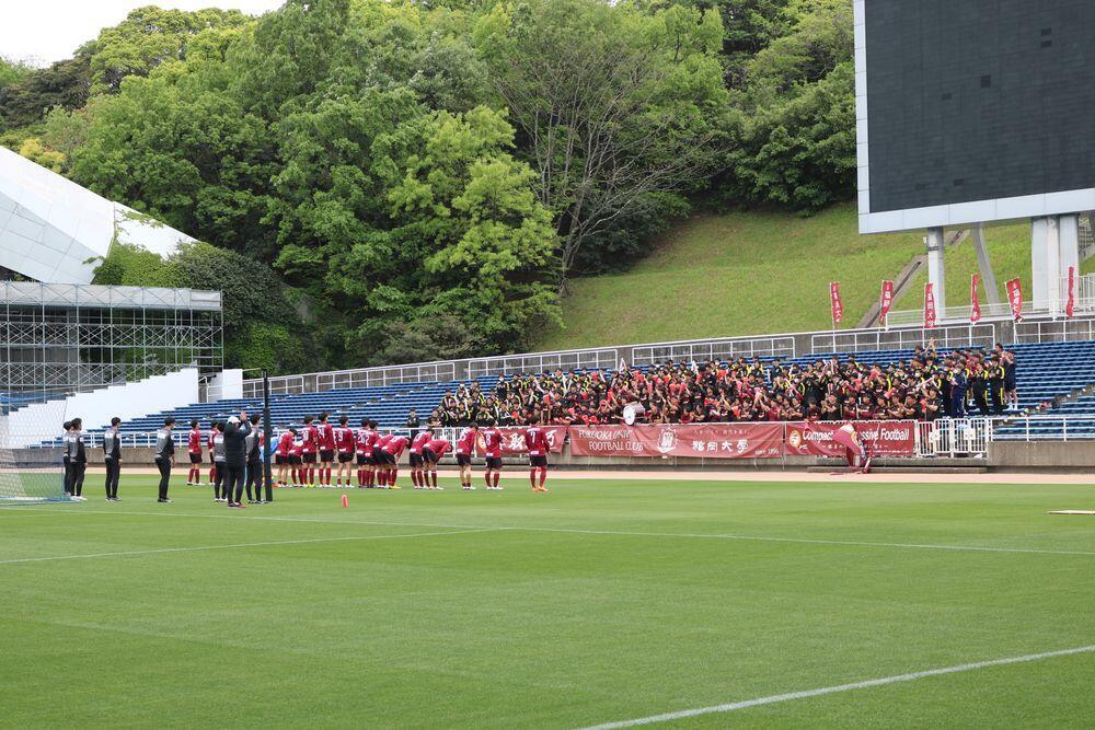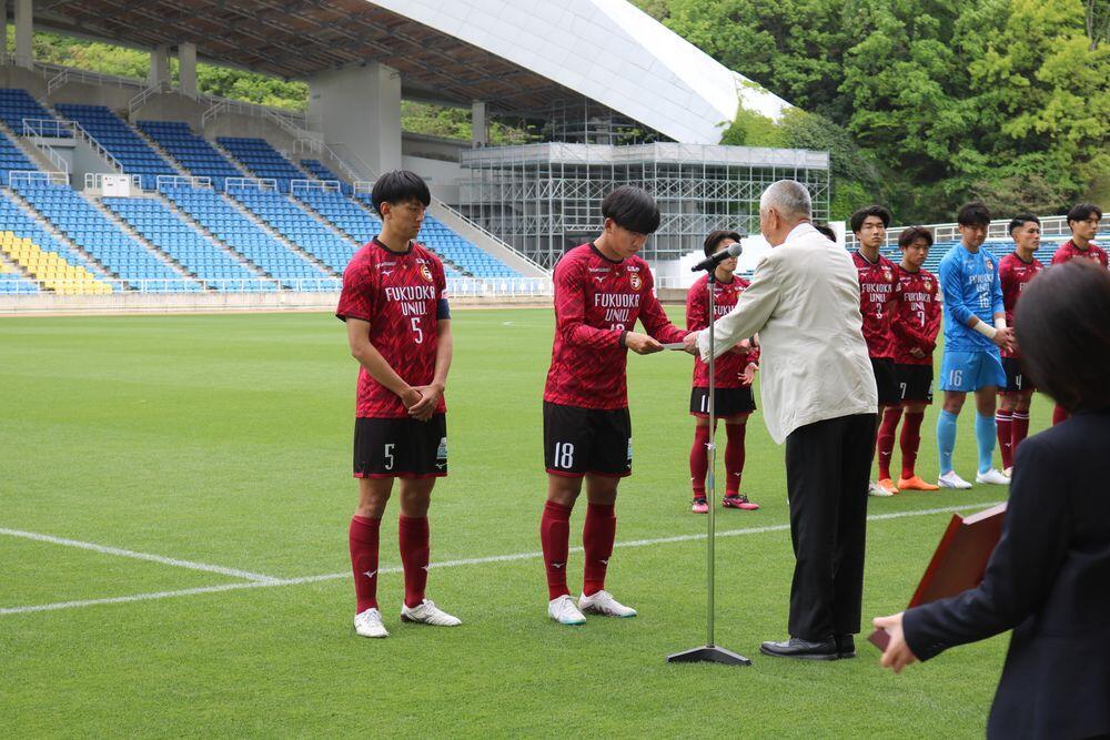 昨年同様、総シュート数は8-3で福大が上回り、全体的にはプロ相手に十分健闘した内容だった。しかし、FW陣のプレー精度やシュート力という点では、まだまだ不足する点が多かった。自分たち自身の力でゴールを決めて勝ちたかったが、「勝負の一瞬、細部に宿る」の言葉の通り、ほんの僅かな差が勝者と敗者を分けたと言える。ベスト電器スタジアムやライブ配信で応援いただいた皆様、ありがとうございました。これからも、福大サッカー部の活躍にご期待ください。