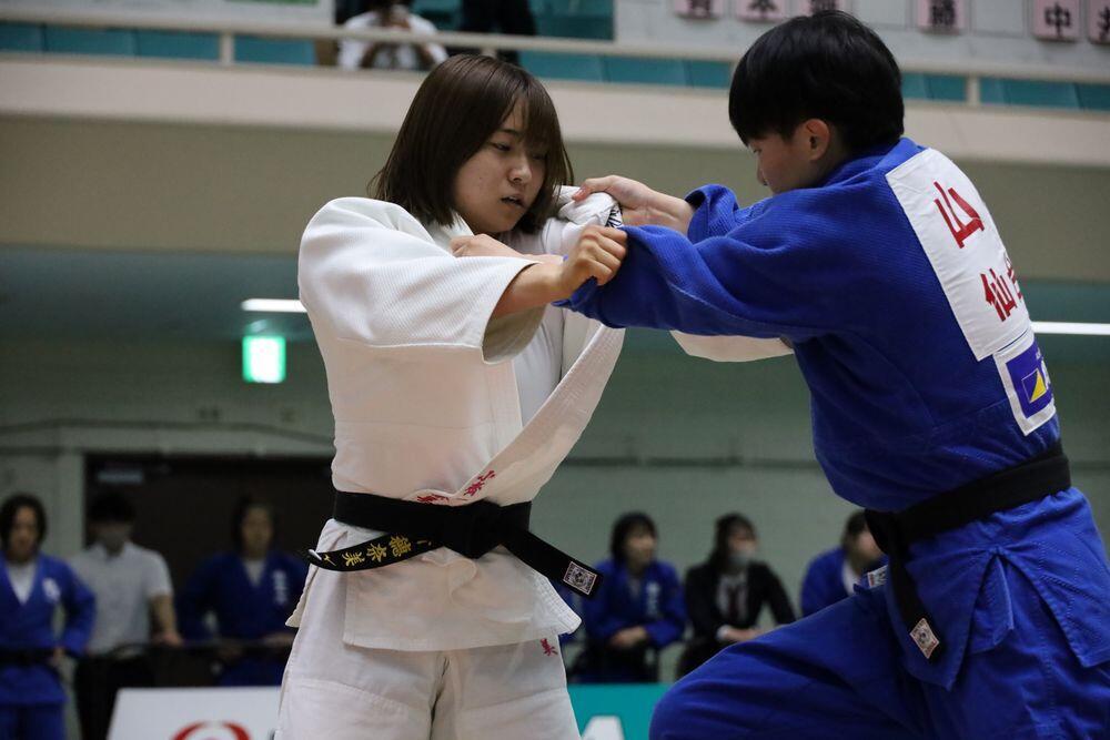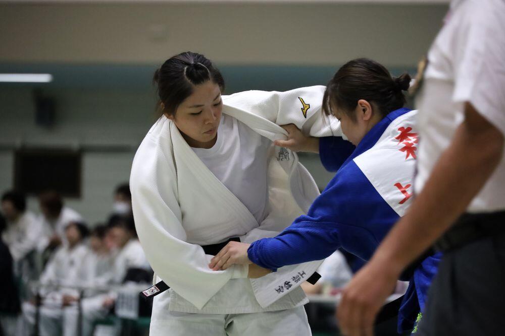 女子は1回戦シードで迎えた2回戦、上武大学(関東)と対戦し快勝します。その勢いに乗って3回戦、仙台大学(東北)と戦います。試合は、先鋒と次鋒が引き分け、中堅が勝ちを得ます。1歩リードで進んだ副将戦では仙台大学に勝ちを譲り、勝負は大将戦に委ねられました。一進一退の展開は試合時間残り10秒程のところで「技あり」を取られ、そのまま試合終了となりました。結果、3回戦敗退で今大会を終えました。
