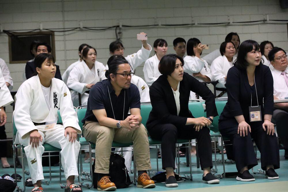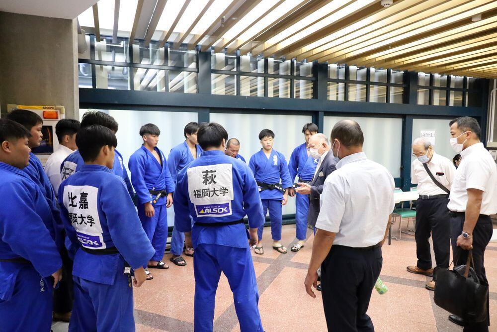 試合には、柔道部卒業生も駆けつけ、声援を送られました。また試合後には、次の試合に向けて厳しくも優しい助言も送られました。今後も柔道部(男子・女子)へのご声援をよろしくお願いします。