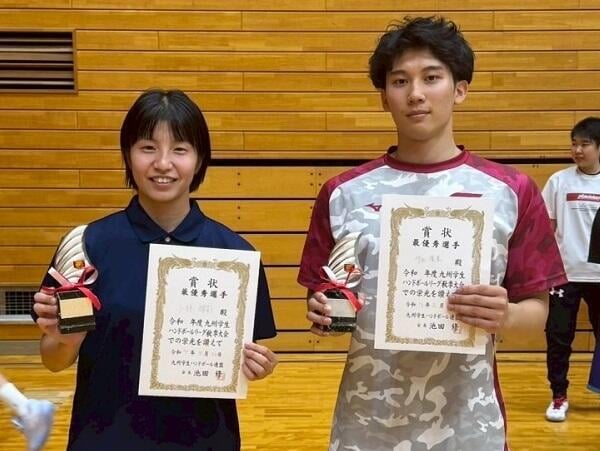 全日本インカレに向け、男子主将の守田慶星選手(スポーツ科学部4年次生)は「全日本インカレでは福大らしさを前面に出し、チーム一丸となって戦い抜きます。ベスト8の壁を破り、優勝をつかみ取りますので、応援をよろしくお願いします」、女子主将の小林輝莉選手(スポーツ科学部4年次生)は「全日本インカレがこのチームでやれる最後の大会です。九州代表としてこの舞台に立てることに感謝し、諦めずに戦い抜きます。また持ち味である堅守速攻を徹底し、チームメイト全員で走り抜きますので応援よろしくお願いします」と意気込みを語ります。
