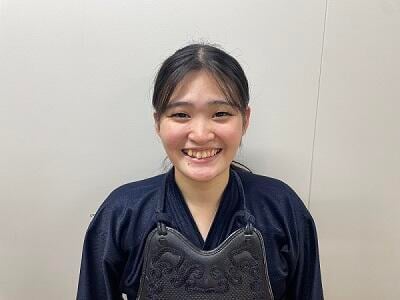 大嶋妃奈選手(商学部4年次生)です。上段の構えを生かした豪快な技と攻撃力のある攻め、また引き技も打てる選手です。チームに良い流れを引き寄せる試合を展開するので、ぜひ注目して下さい。