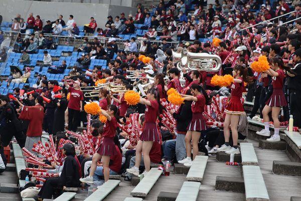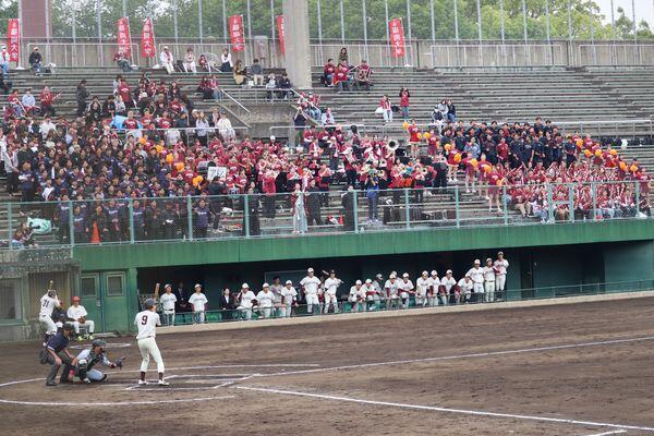 「福西戦」は九州六大学野球の中でも注目されるカードで、そこで繰り広げられる応援合戦には、応援指導部の応援団・チアリーダー・ブラスバンド、和太鼓部(鼓舞猿)と在学生・卒業生・教職員が一体となって選手たちの背中を後押しします。