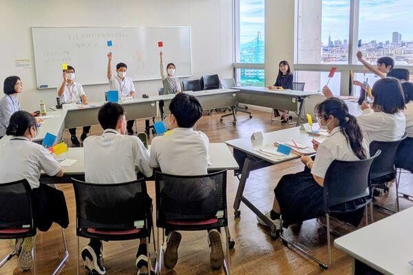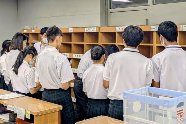当日は、事務補助を行っているビジネスサポートチームの学内便業務を見学していただきました。見学後は、チームの職員と、生徒の皆さんで「働くために必要なこと」をテーマに座談会を行いました。チーム職員の経験談をもとに活発な意見交換が行われました。